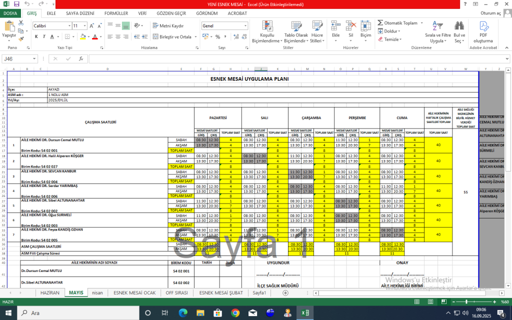 17.30-20.30 Arası esnek mesai uygulaması vardır. Esnek mesai uygulaması haftanın her günü ilgili hekim tarafından yapılmaktadır.